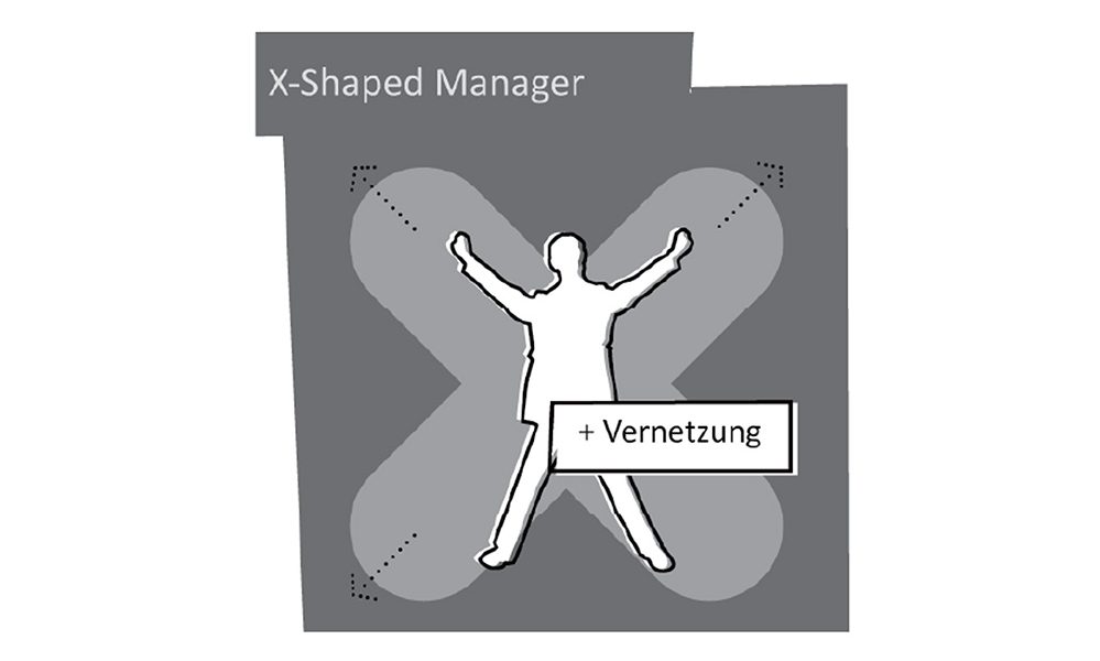 Der Typus des „X-Shaped Managers“ bzw. der „X-Shaped Managerin“ bricht mit dieser veralteten (und häufig statischen) Denkweise der zweidimensionalen Differenzierung in Spezialist*innen und Generalist*innen und steht für die „beziehungsstarke“ Befähigung zu „cross“-disziplinärem Denken und Handeln in der Projekt- und Wissensarbeit.